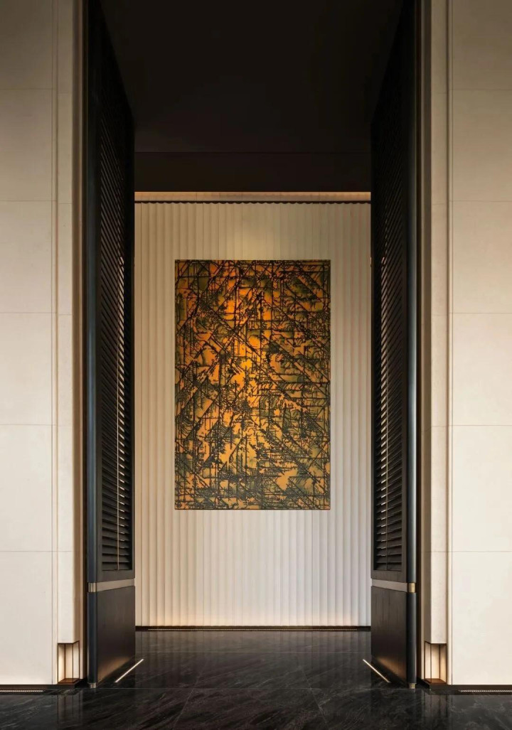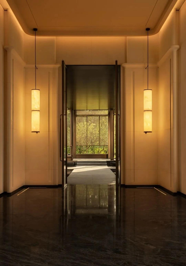 The pure white corridor walls abandon all redundancy and become an art of negative space. The designer uses the fewest strokes to build up the momentum for the upcoming spatial chapter. Before arriving at the next scene, this corridor itself has already smoothed out the noise and settled the mind.
