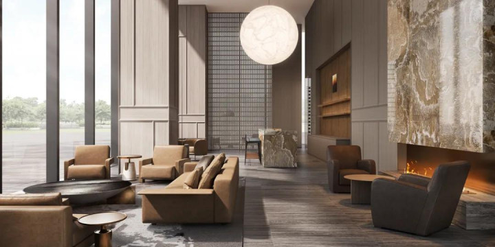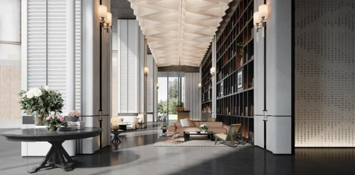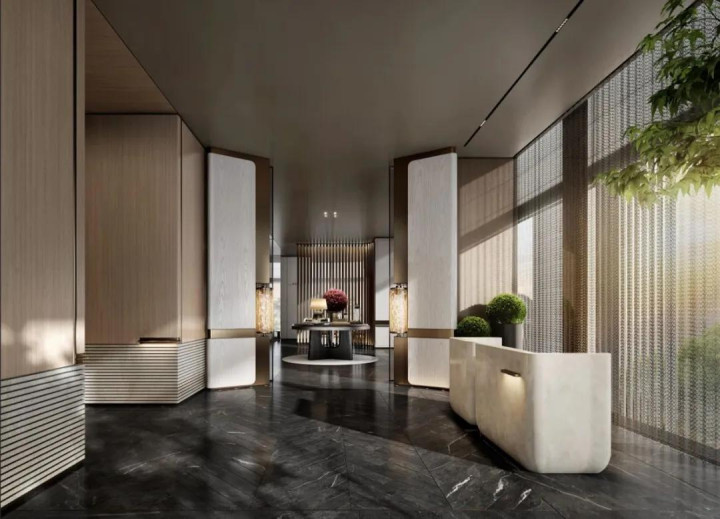 步入售楼处,黄铜的温润与灰度空间的素净彼此成全,既延续了某种沉淀后的记忆,又勾勒出属于当下的精致轮廓。时间在此不再是线性流逝,而成为一种可被触摸的质感,连接着过去与未来,含蓄而充满力量。