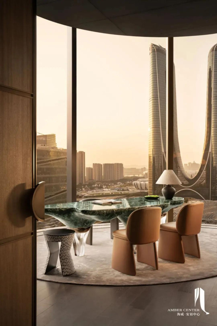 在会客厅,严谨的商务对话与放松的自然冥想并不冲突,光影随时间游移,掠过交谈者的肩头,又安静地落在一旁的休憩角落。空间不再只是功能的容器,而是悄然弥合着理性与感知的边界,让思维在开阔与沉静之间自由流动。