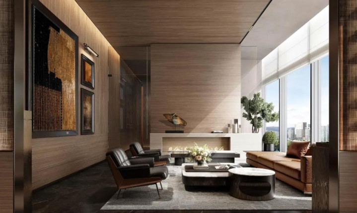 三层的会所空间,巧妙地抹去了功能的边界,材质是这里无声的语言,冷峻大理石与温润原木的并置,并非简单的对比——岩板的锐利被木质的柔和悄然中和,理性的秩序中生长出感性的温度。
