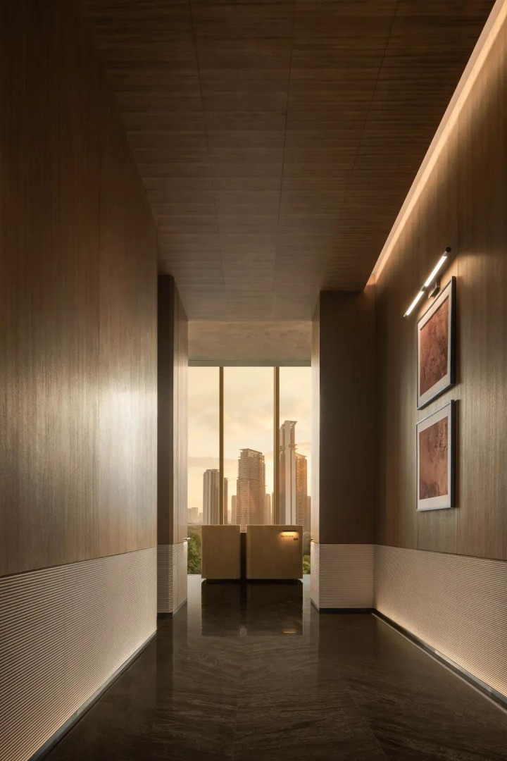 纯白的走廊墙面摒弃了所有冗余,化身为一处留白的艺术,设计师用最少的笔触,为即将展开的空间篇章蓄足了势能。在抵达下一个场景之前,这条走廊本身,已先一步抚平喧嚣,让心境沉淀下来。