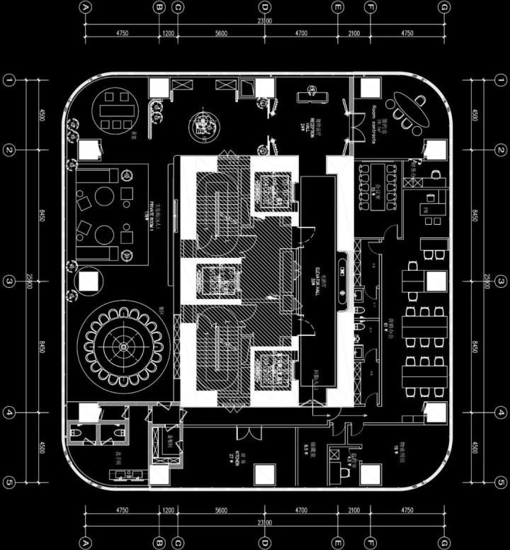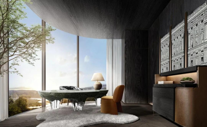 穹顶式天花向上升展,与地面的圆形沙盘遥相呼应,在开阔的尺度中,暗合了天圆地方的古老宇宙观,设计师以当代的建筑语言,重新诠释了传统中“亭台观景”的诗意。于是,这处原本理性的商业展示空间,竟也生出了几分闲坐观云、静听风吟的文人意趣,在现代场景中,寻回了一丝东方的、内省的从容。